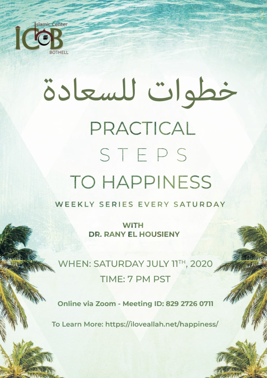 This is a practical workshop for those looking for happiness. We will have an item to practice every week to reach a higher status for our hearts in shaa Allah. This series is based on multiple books, lectures, and experiences (Refer to the References section)